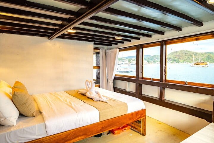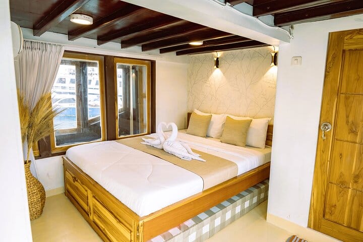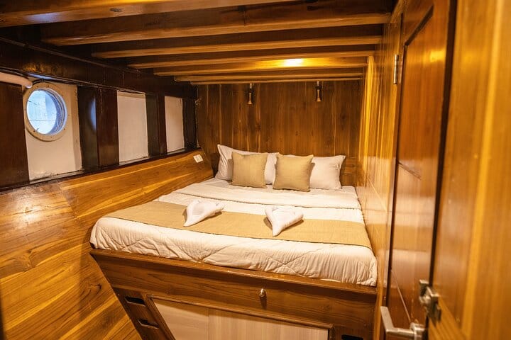 Sail the seas on the Deluxe Pinisi ship, a mid-sized vessel designed for a luxurious experience. This 3-day, 2-night trip accommodates 16 to 30 passengers and features comfortable amenities for every traveler's needs. Choose from shared rooms, private rooms with spacious beds, or master cabins boasting en suite bathrooms and ocean views. Enjoy the perfect blend of relaxation and adventure aboard this elegant ship, making your journey unforgettable.